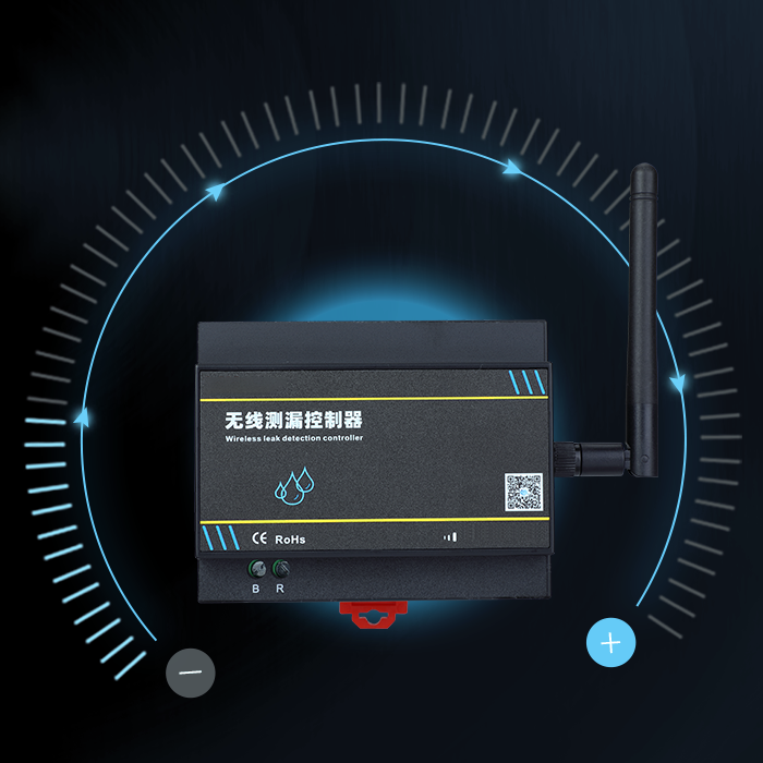 控制器與感應(yīng)線連接,通過無線LoRa信號(hào)向無線LoRa網(wǎng)關(guān)傳輸漏水情況數(shù)據(jù),網(wǎng)關(guān)通過RS485、4G網(wǎng)絡(luò)、以太網(wǎng)及WIFI等方式向上行設(shè)備傳輸數(shù)據(jù),上傳至監(jiān)控平臺(tái),實(shí)現(xiàn)集中監(jiān)控。