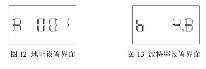 參數(shù)設(shè)置:長按 MENU 鍵參數(shù)設(shè)置界面,按一次 MENU 鍵切換參數(shù)(通訊地址、波特率),輕